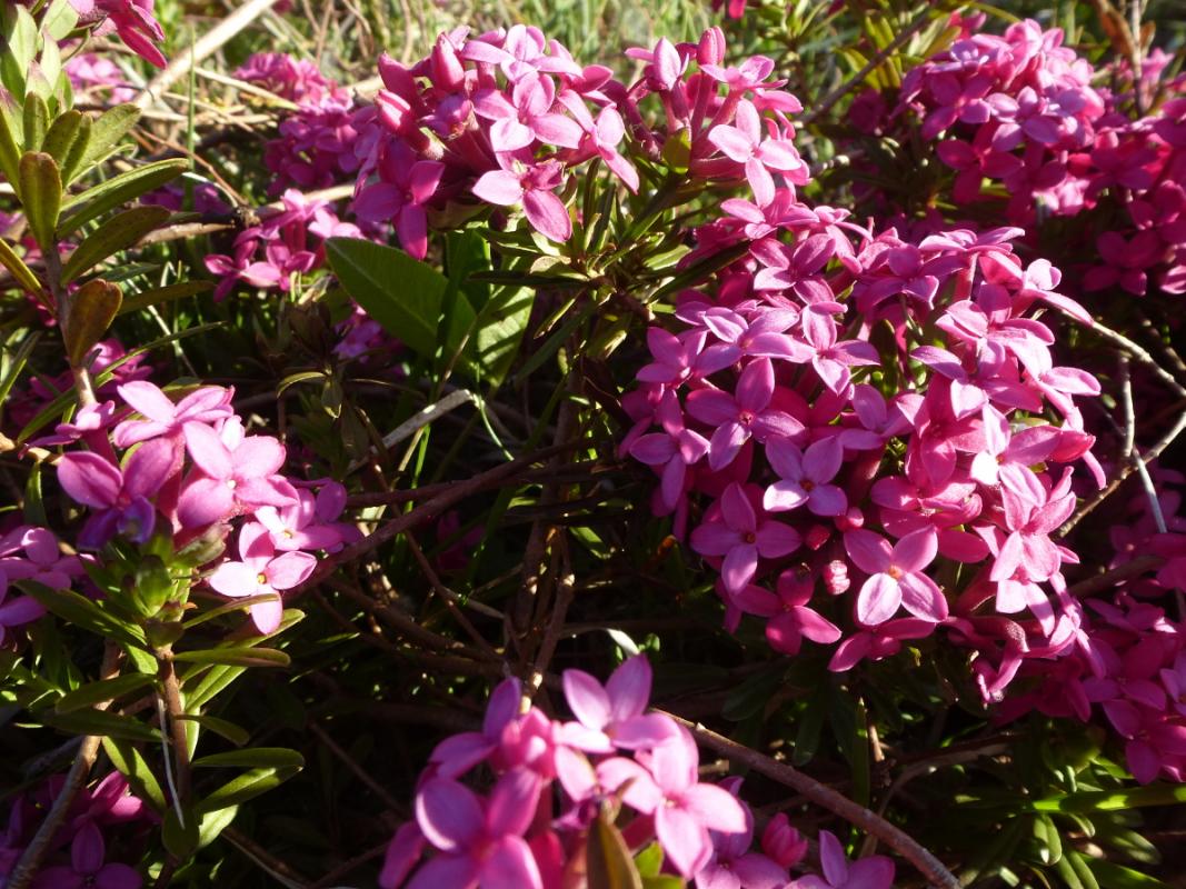 Der Rosmarin-Seidelbast ist ein hübscher und wohlriechender polsterartiger Kleinstrauch, der sich auch in unseren Gärten gut macht.