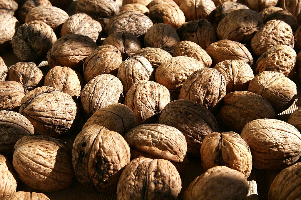 Juglans regia ‘Jupiter’, die Echte Walnuss, ist ein kraftvoll wachsender Obstbaum und eindrucksvoller Gartenbaum, der als Solitär zum charaktervollen Hausbaum und Schattenspender heranwächst. Die Sorte ‘Jupiter’ überzeugt mit üppigem Fruchtansatz, großen, leicht zu knackenden Nüssen und hellen, aromatischen Kernen. Im Frühjahr erscheinen die männlichen Kätzchen und die weiblichen Blüten versetzt; die späte Blütezeit mindert die Gefahr von Spätfrostschäden. Das gefiederte, frischgrüne Laub entfaltet sich nach dem Austrieb rasch, verströmt einen angenehmen Duft und färbt sich im Herbst dekorativ gelb, während die breite, rundliche Krone mit markanter Silhouette imponiert. Als Zier- und Obstgehölz macht ‘Jupiter’ in weitläufigen Rasenflächen, im Obstgarten, in Parkanlagen oder als Alleebaum eine hervorragende Figur; auch im großzügigen Vorgarten ist er ein langlebiger Solitär mit hohem Zier- und Nutzwert. Der Nussbaum bevorzugt einen warmen, vollsonnigen Standort sowie tiefgründige, humose, nährstoffreiche und gut drainierte Böden mit leicht kalkhaltigem Lehm. Staunässe wird schlecht vertragen, wohingegen ein eingewachsenes Exemplar sommerliche Trockenphasen gut meistert. Die Pflege ist unkompliziert: In den ersten Standjahren regelmäßig wässern, den Wurzelraum mulchen und nur maßvoll schneiden, da Walnussbäume einen ausgeprägten Saftfluss haben; Erziehungs- und Formschnitte erfolgen am besten im Spätsommer. Die Ernte der reifen Walnüsse fällt in der Regel in den Zeitraum von September bis Oktober aus und bringt zuverlässig hohe Qualitäten. ‘Jupiter’ eignet sich als langlebiges Obstgehölz für großzügige Gärten, Höfe und Landschaftspflanzungen, wo ein prägnanter Blüten- und Fruchtschmuck mit einer imposanten Krone gefragt ist.