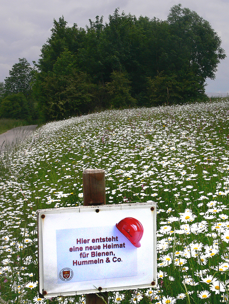Seit einiger Zeit erfreue ich mich an einer herrlichen Blumenwiese, die unsere Gemeide als neue Heimat für Hummeln und Bienen angelegt hat.