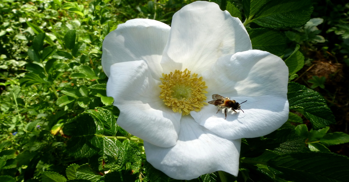 Ich liebe ganz besonders die verschiedenen duftenden Schneelballarten, von denen der Winter-Schneeball schon früh im Jahr Bienen anlockt.